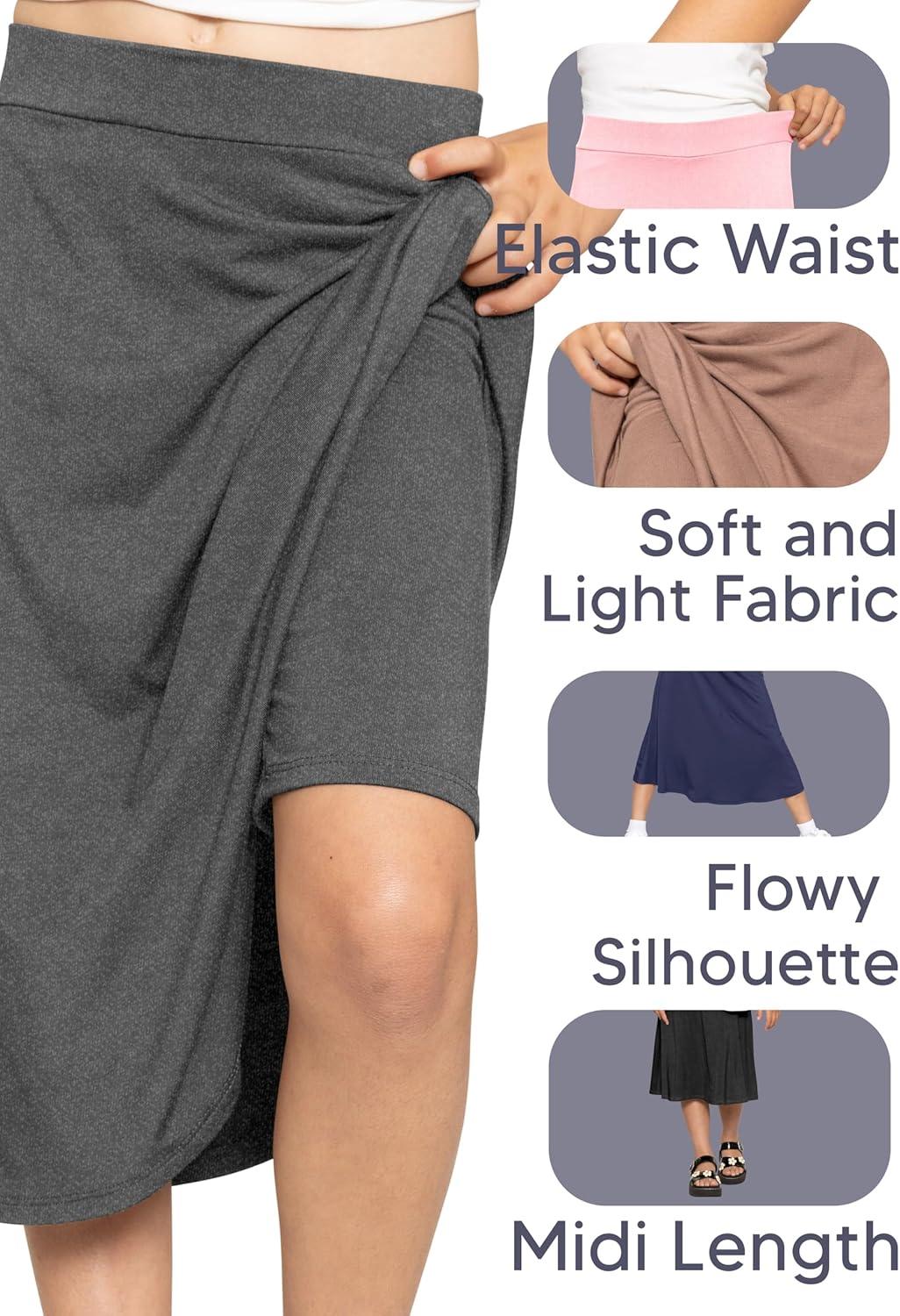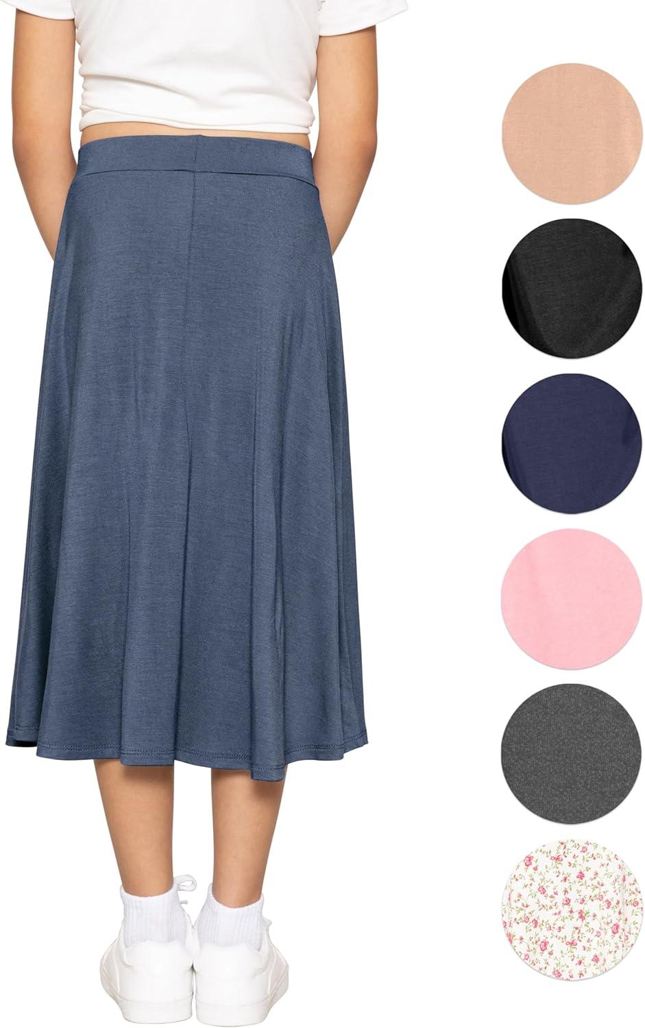 STRETCH IS COMFORT Youth Girls Flowy A-Line Skirt Knee Length and Ankle Length | Kids | Sizes 4-16(Brown)