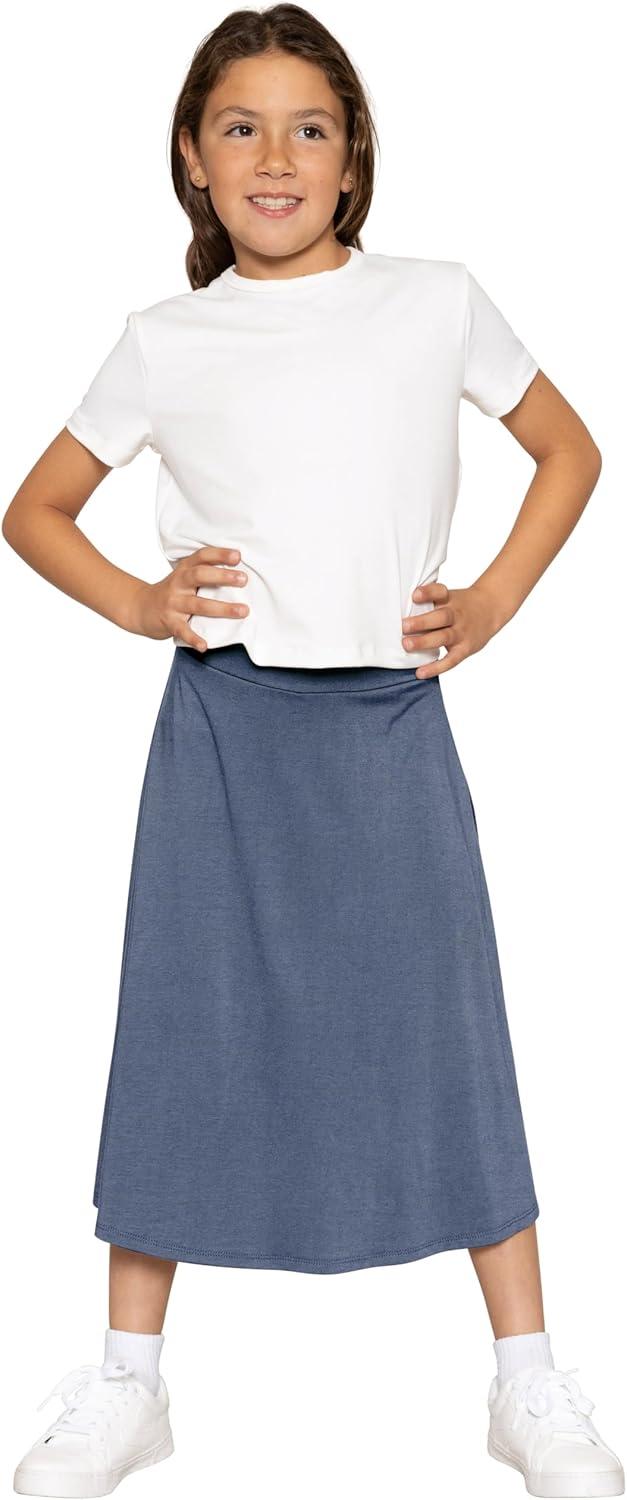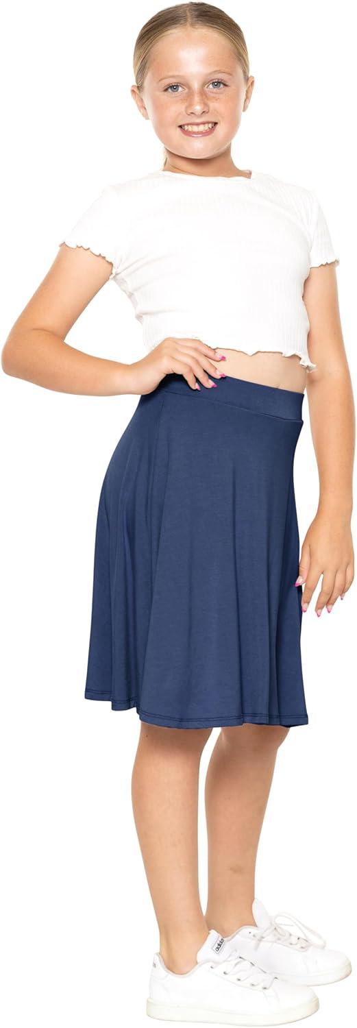 Girls A-Line Skirt with Built-in Shorts | 3 Lengths to Choose from: Short, Knee, and Midi | Size 4-16(Light Navy)