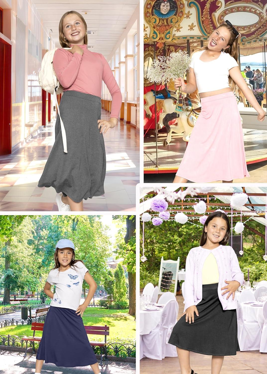 imageSTRETCH IS COMFORT Youth Girls Flowy ALine Skirt Knee Length and Ankle Length  Kids  Sizes 416Brown
