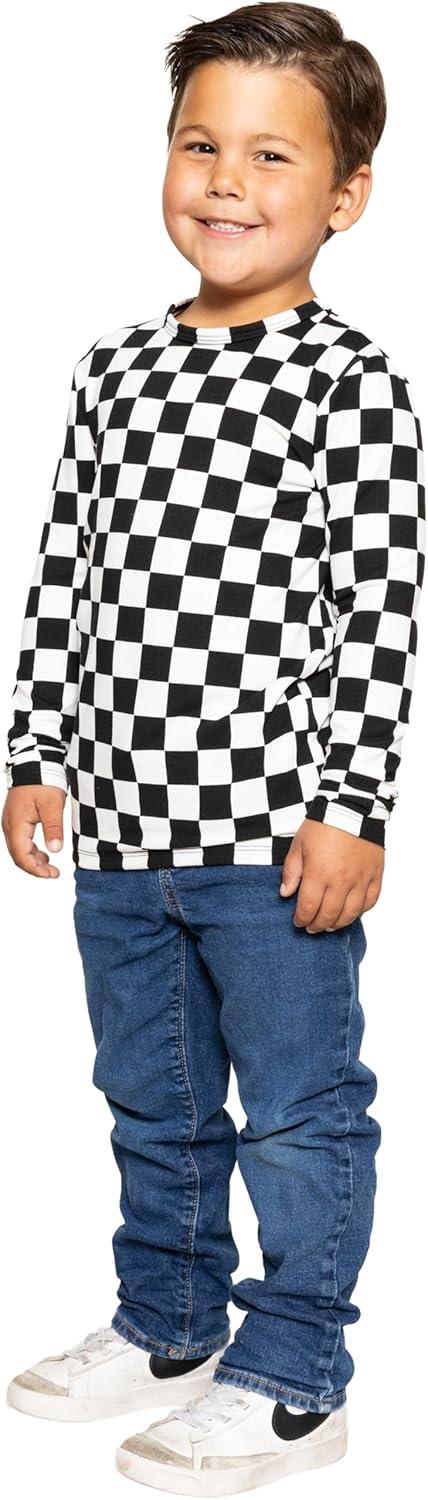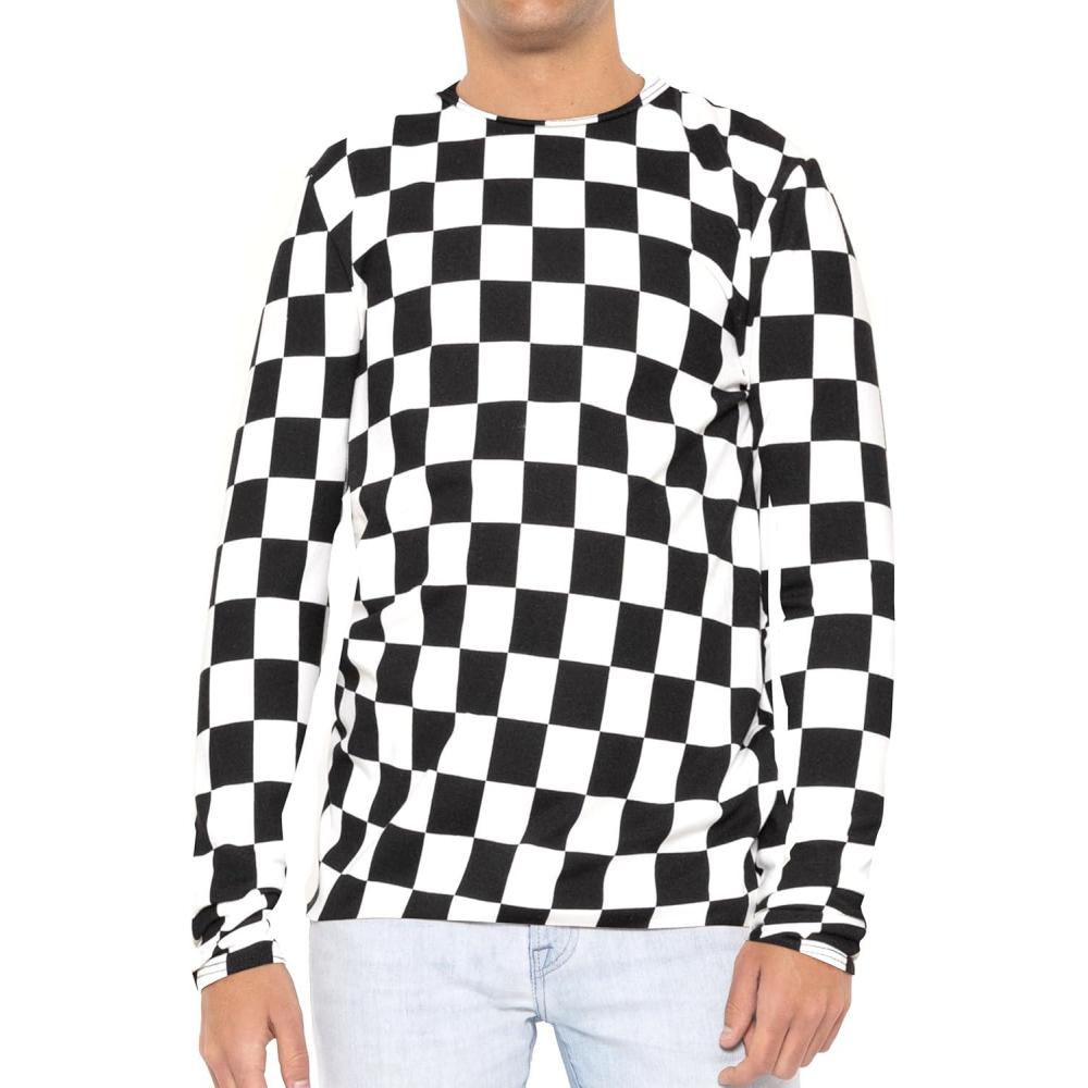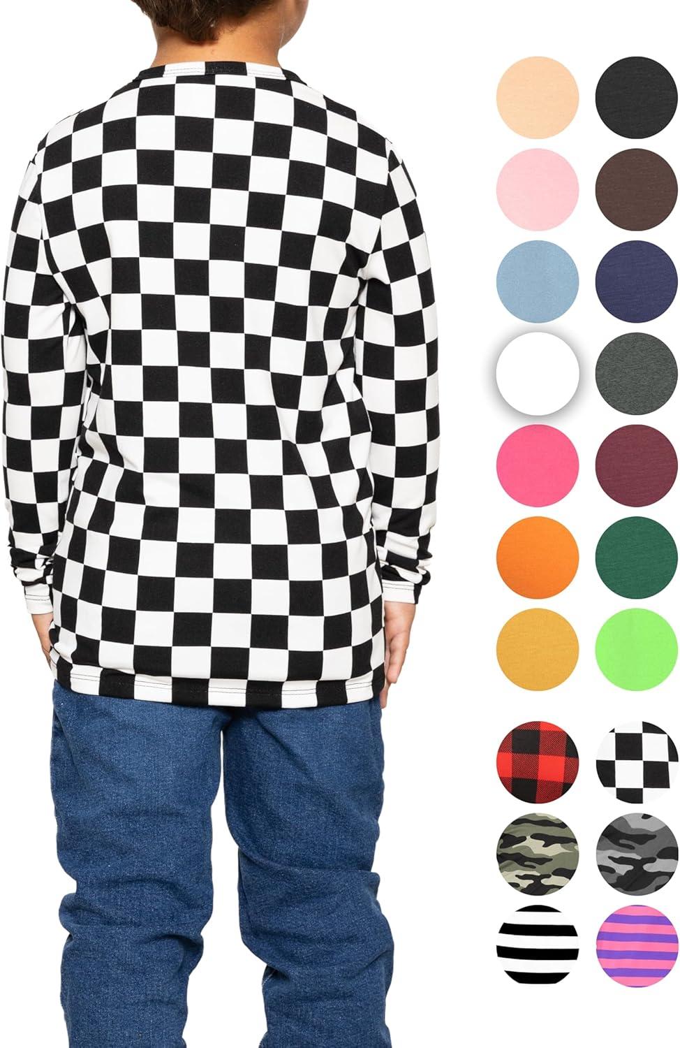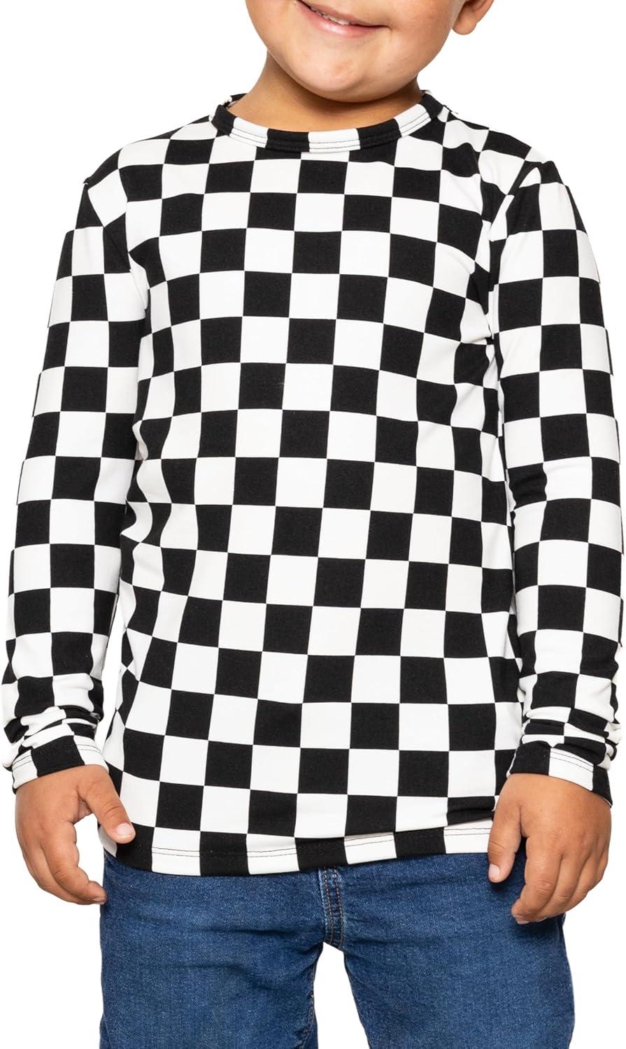STRETCH IS COMFORT Boy’s and Men’s Oh So Soft Long Sleeve Top | Youth S-Adult 3X(Checkered Black and White)
