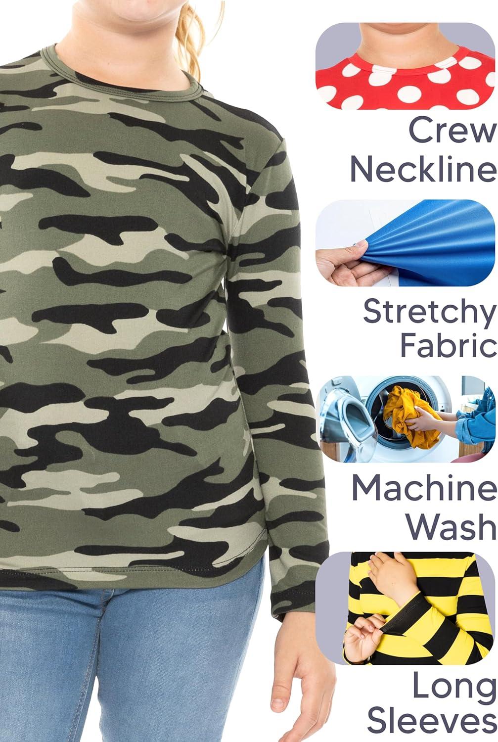 STRETCH IS COMFORT Girls Print Classic Crew Neck Short and Long Sleeves Tee Shirt | Soft Everyday Basic Top | 2T–16(Mystique Purple)