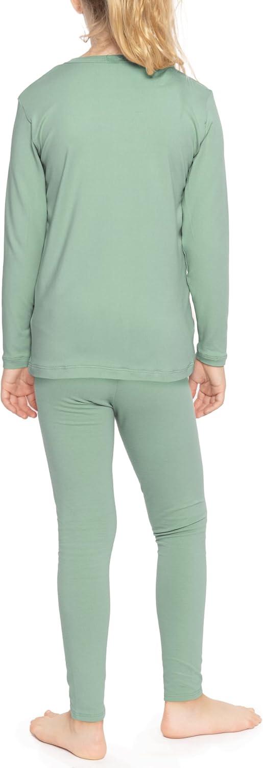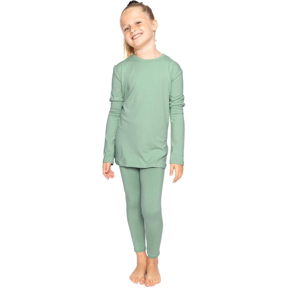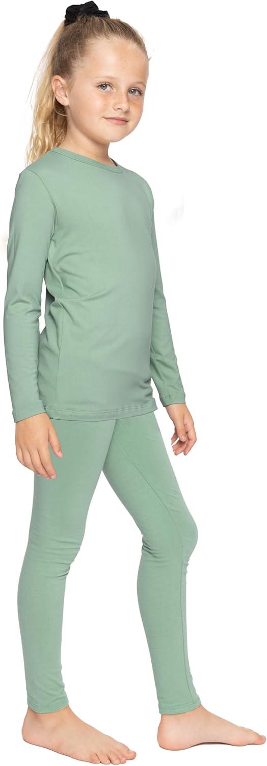 STRETCH IS COMFORT Oh So Soft Youth Girls Long or Short Sleeve Crew and Leggings Set, Includes Top and Bottom(Sage Green)