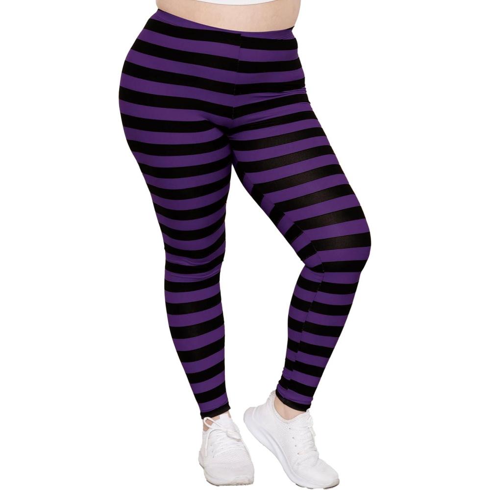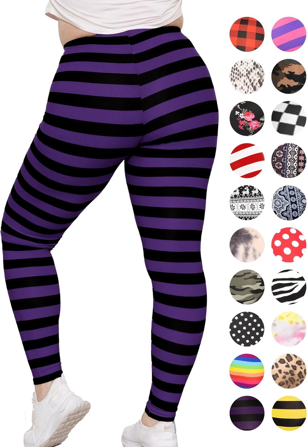 STRETCH IS COMFORT Women’s and Plus Size Oh So Soft Knee & Full Length Leggings | Lots of Prints | Adult Sizes S-7X(Black Purple Stripes)