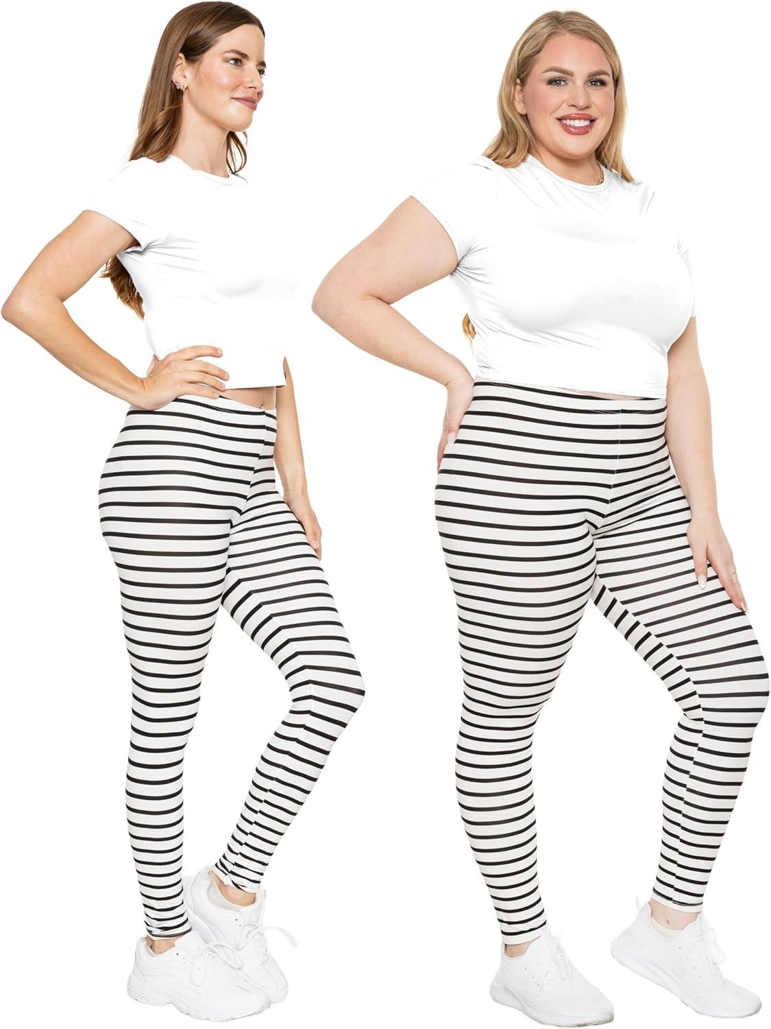 STRETCH IS COMFORT Women’s and Plus Size Oh So Soft Knee & Full Length Leggings | Lots of Prints | Adult Sizes S-7X(Nautical Black Stripes)