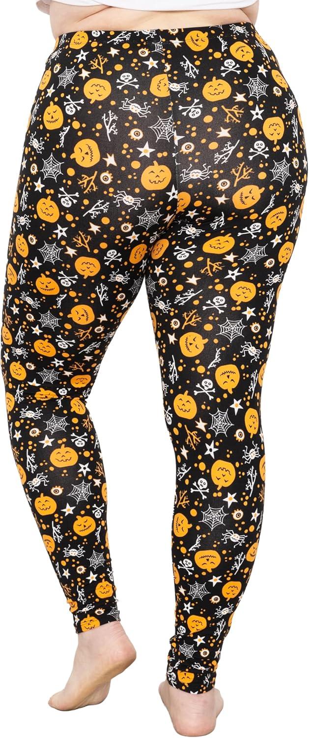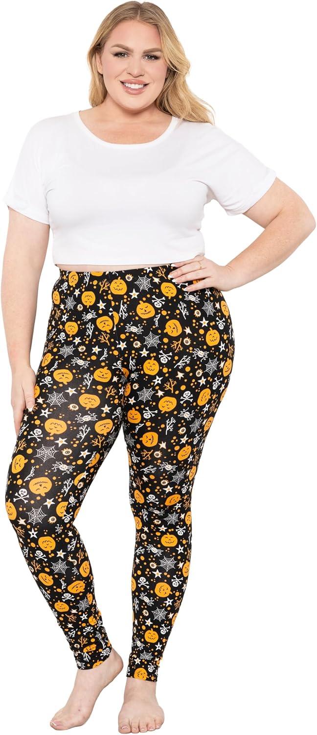 STRETCH IS COMFORT Women’s and Plus Size Oh So Soft Knee & Full Length Leggings | Lots of Prints | Adult Sizes S-7X(Pumpkin Patch)