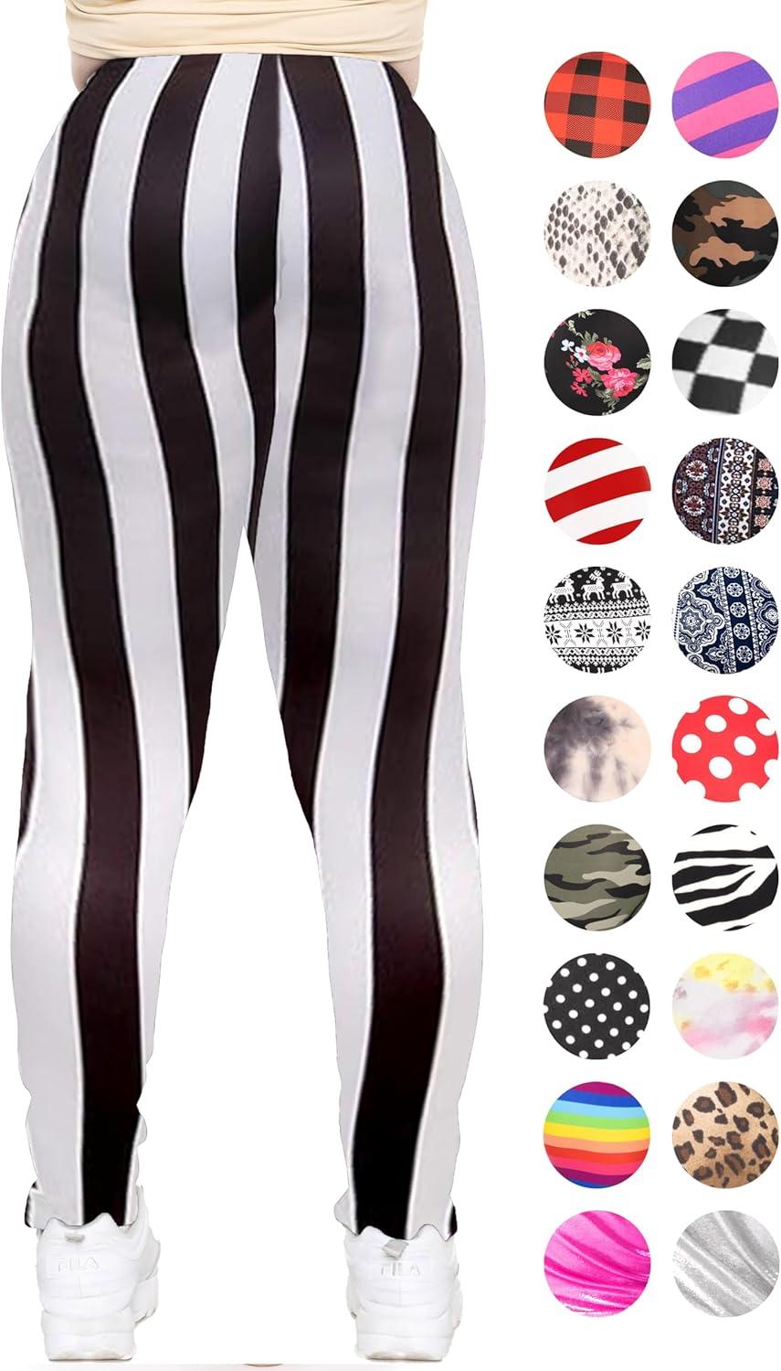 STRETCH IS COMFORT Women’s and Plus Size Oh So Soft Knee & Full Length Leggings | Lots of Prints | Adult Sizes S-7X(Vertical Black and White Stripes)