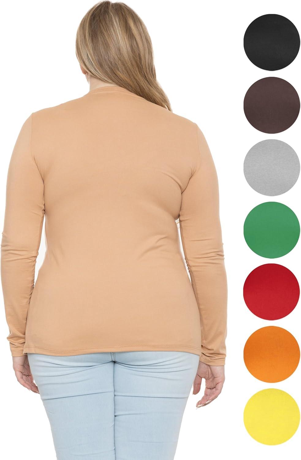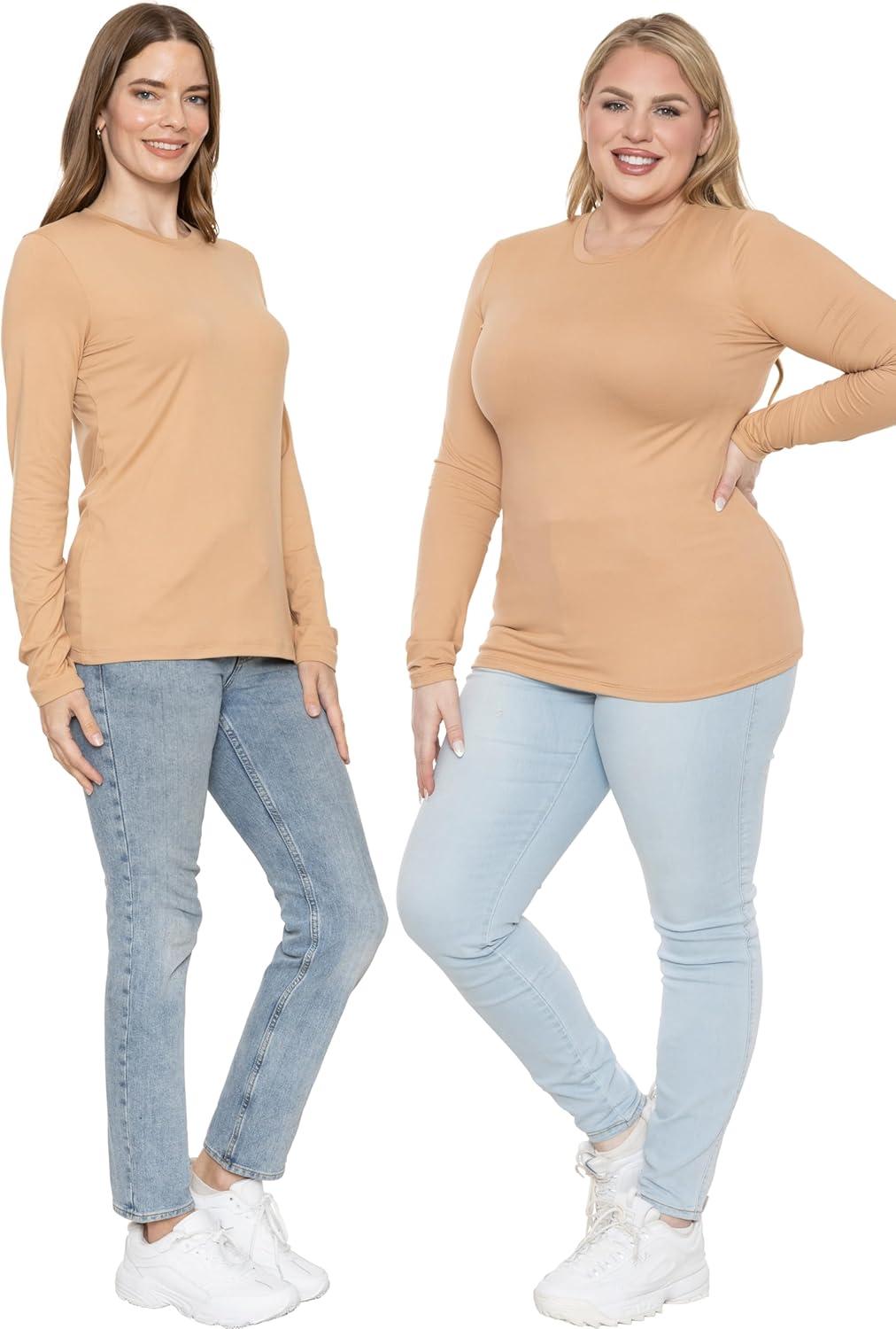 STRETCH IS COMFORT Women’s Long Sleeve Lay Flat Crew Neck Tee | Everyday Top | Plus & Regular Sizes S-5X(Beige)