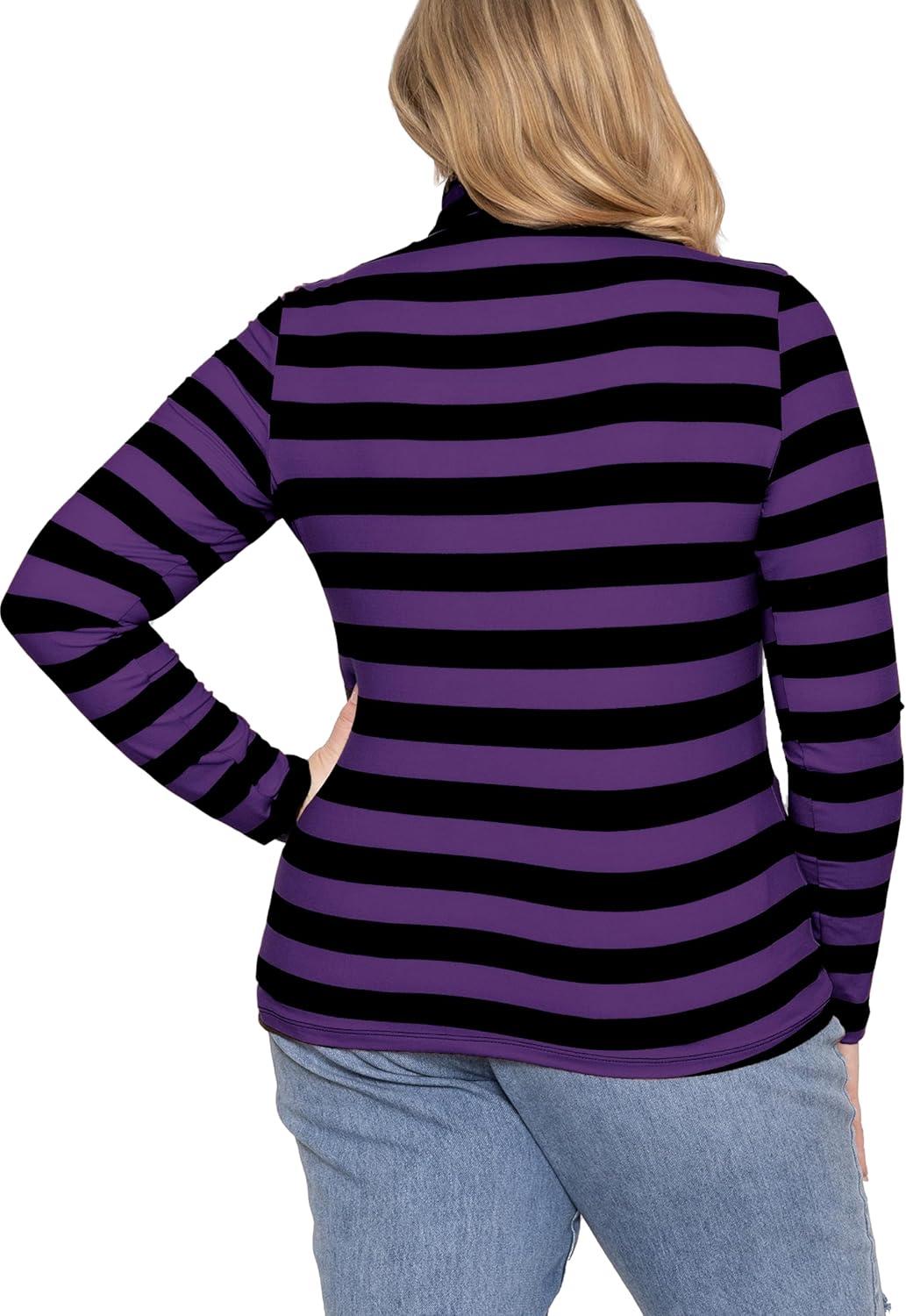STRETCH IS COMFORT Women’s Oh So Soft Warm Long Sleeve Turtleneck Top(Black Purple Stripes)