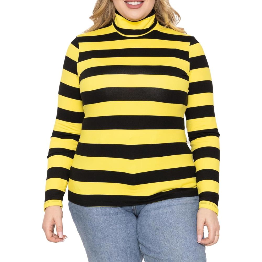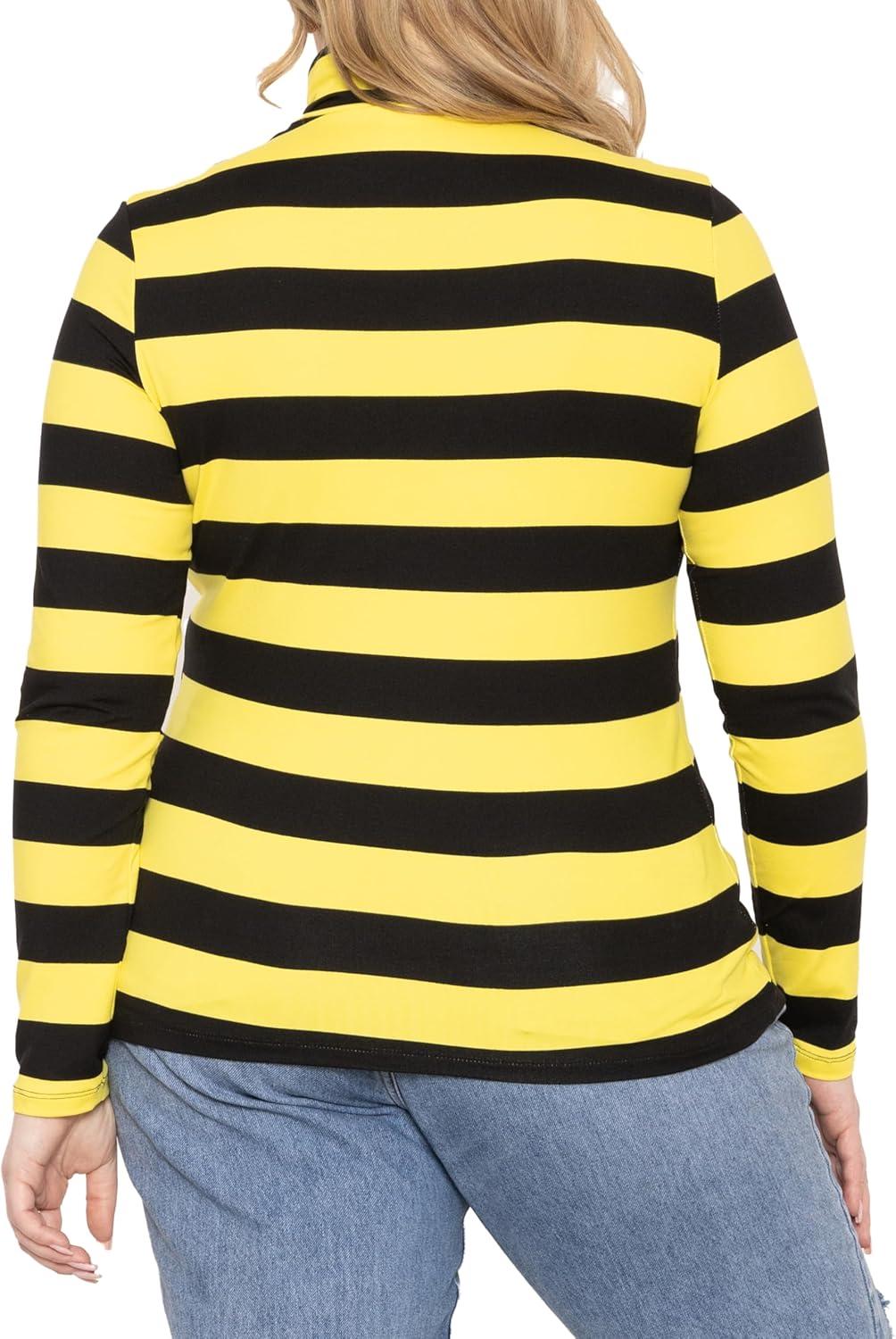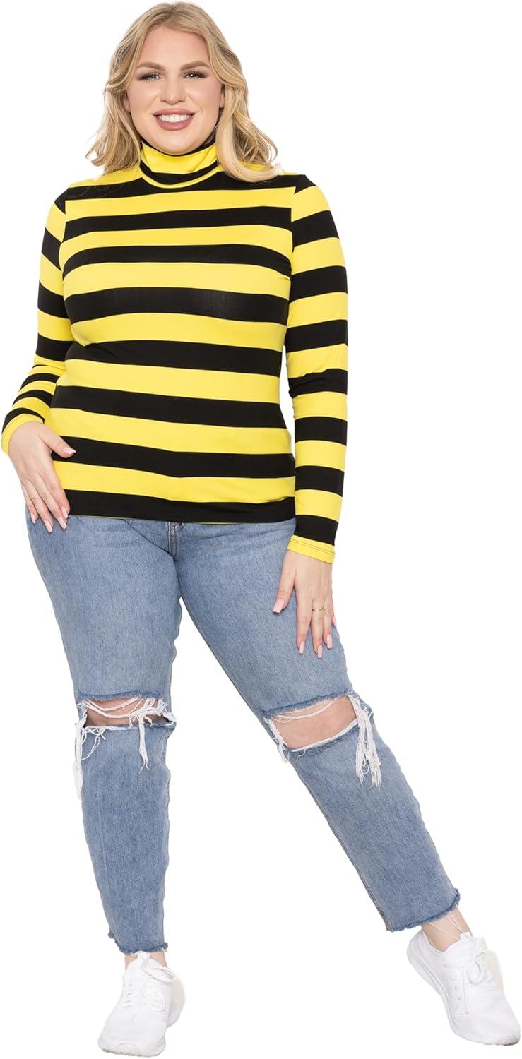 STRETCH IS COMFORT Women’s Oh So Soft Warm Long Sleeve Turtleneck Top(Black Yellow Stripes)
