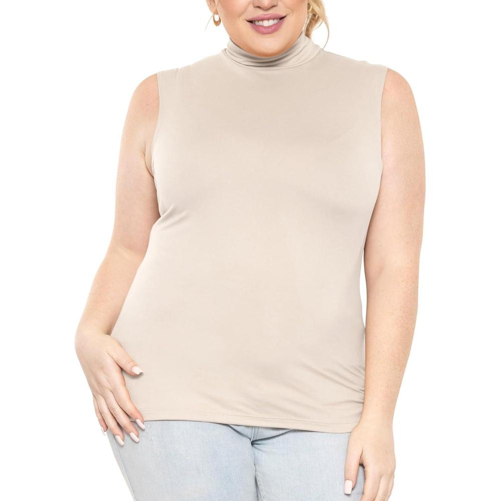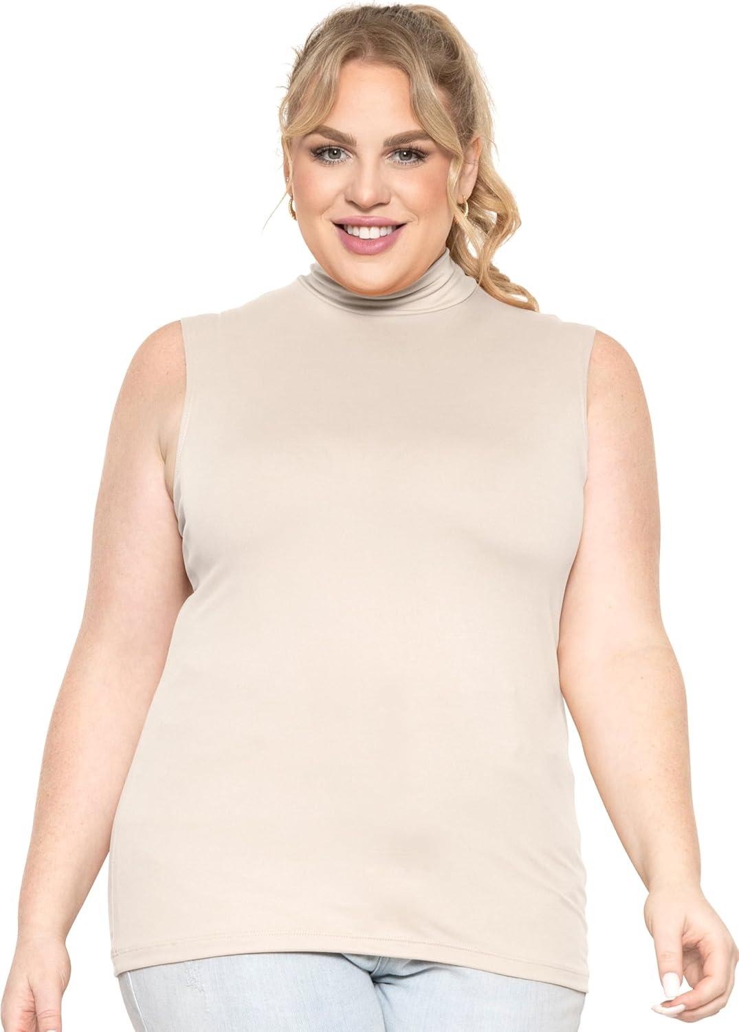 STRETCH IS COMFORT Women’s Plus Oh So Soft Sleeveless Mock Neck Top – Perfectly Stylish, Cozy Essential for Everyday XS-5XL(Cream)