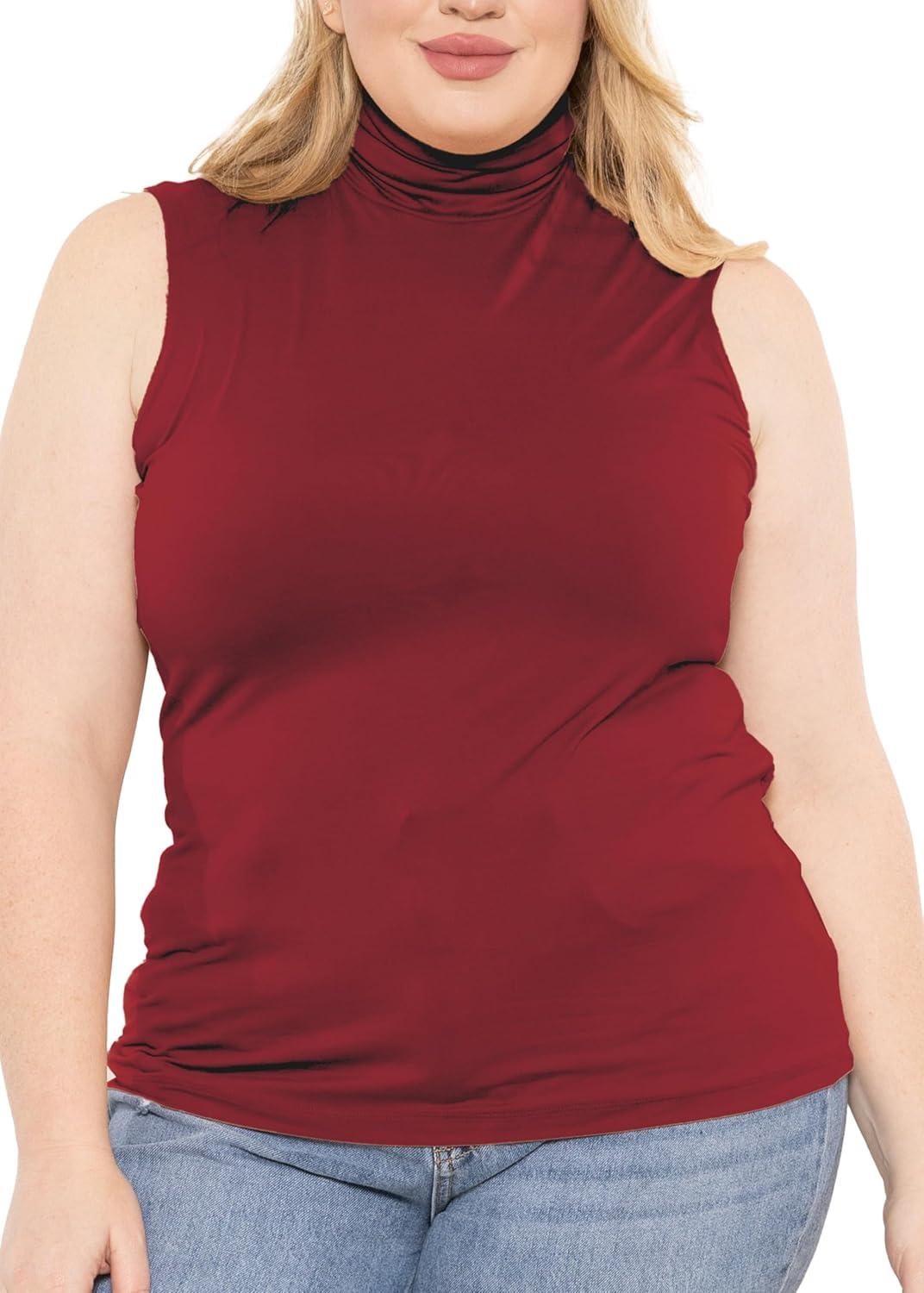 STRETCH IS COMFORT Women’s Plus Size Long Sleeve and Sleeveless Turtleneck | XL – 7X(Red)