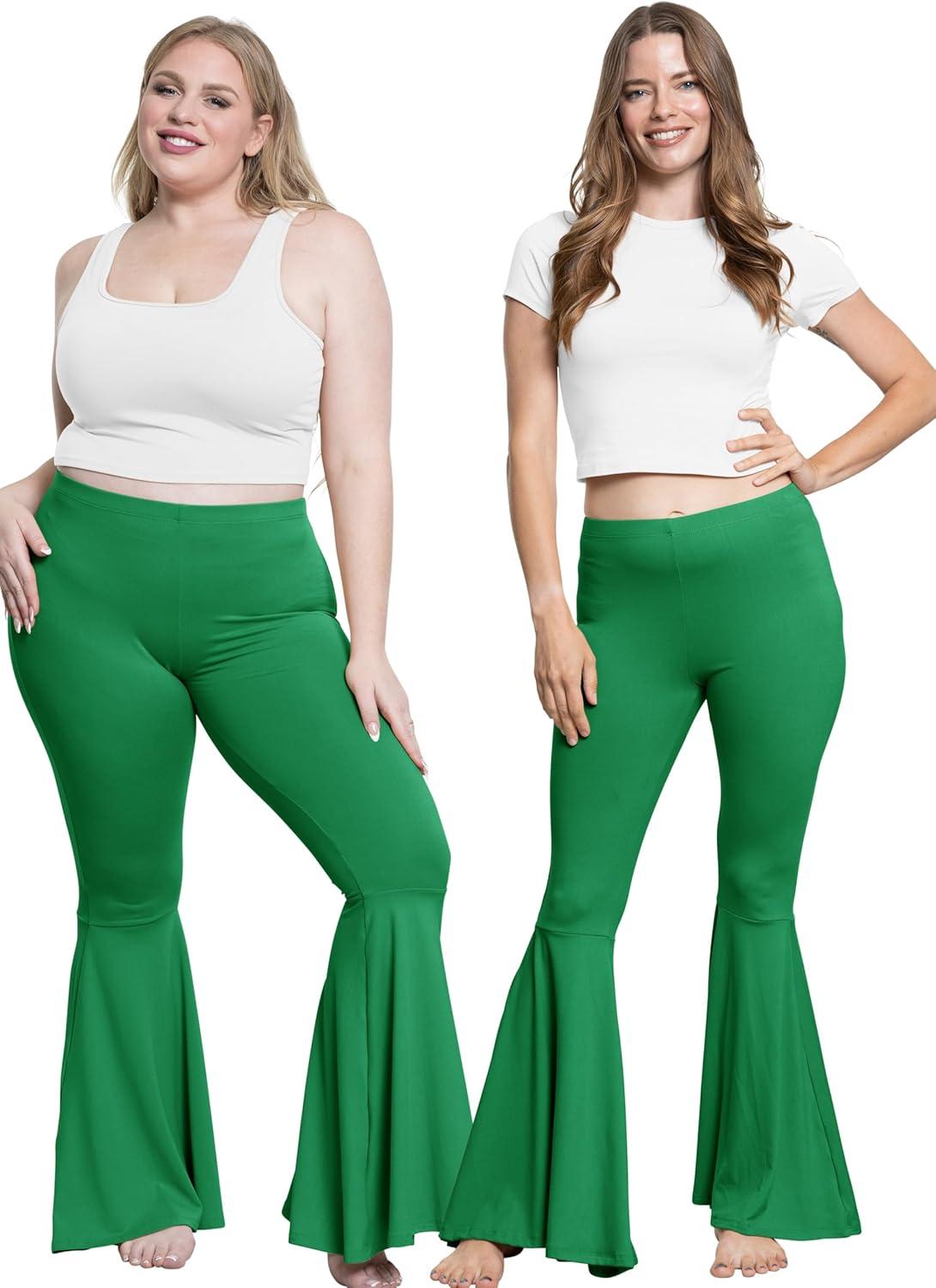 STRETCH IS COMFORT Women’s Plus Size Oh So Soft Pull On Stretchy Bell Bottom Flare Pants| XL-7X(Kelly Green)