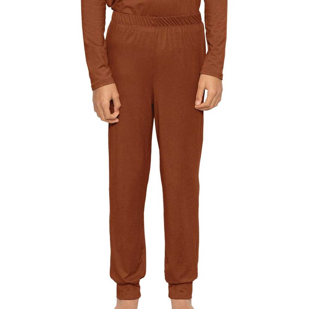 STRETCH IS COMFORT Youth Boys Cuffed Lounge Pants | Soft Knit Joggers | Pull-On Soft Bottoms | Relaxed Everyday Fit | 4–16(Brown)