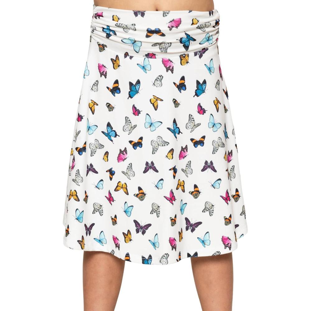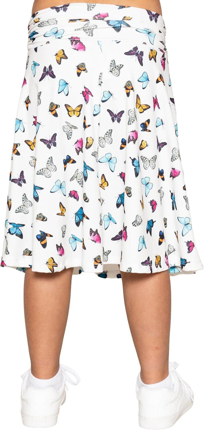 STRETCH IS COMFORT Youth Girl’s Flowy Knee & Ankle Length Skirt with Ruched Waistband | Soft and Lightweight | XS–16(Butterfly)