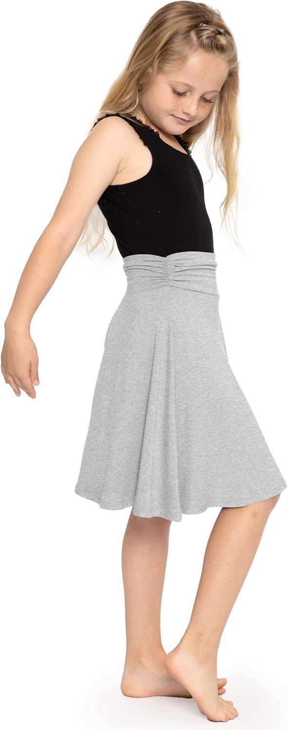 STRETCH IS COMFORT Youth Girl’s Flowy Knee & Ankle Length Skirt with Ruched Waistband | Soft and Lightweight | XS–16(Heather Gray)