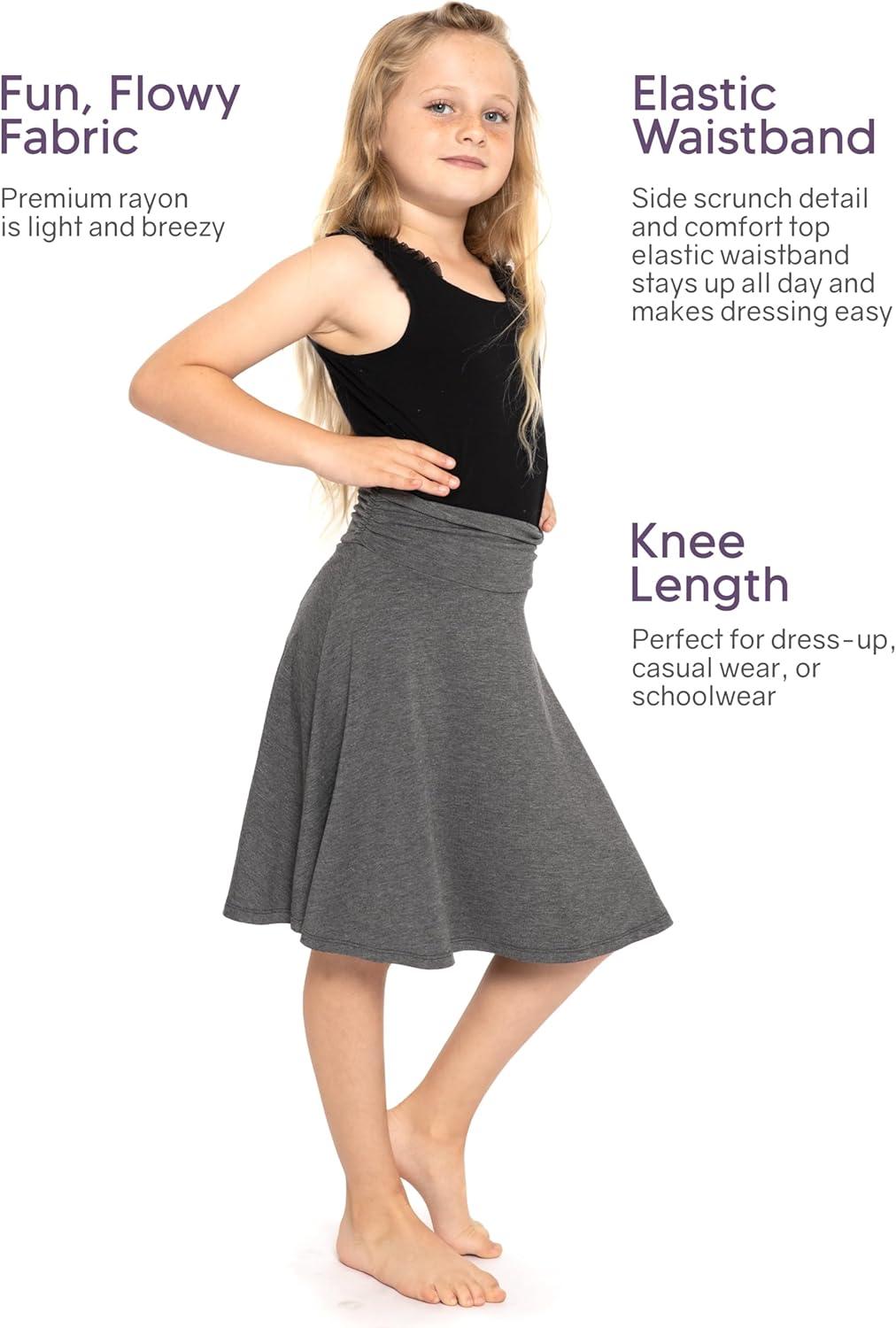 imageSTRETCH IS COMFORT Youth Girls Flowy Knee ampamp Ankle Length Skirt with Ruched Waistband  Soft and Lightweight  XS16Heather Gray
