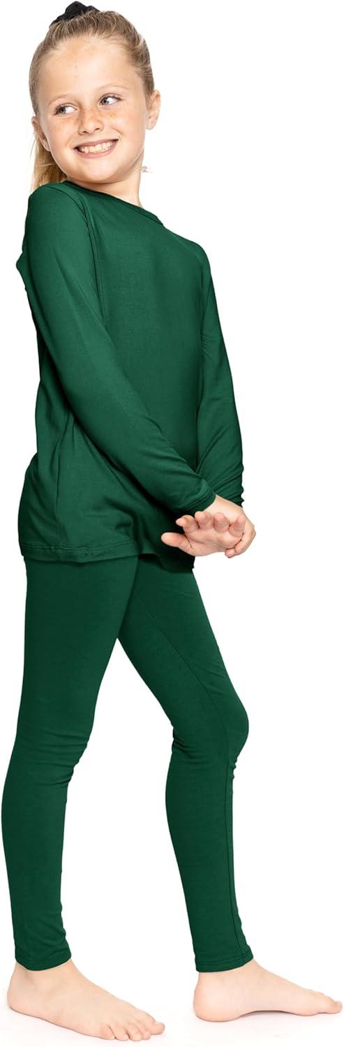 STRETCH IS COMFORT Youth Girls Oh So Soft 2-Piece Set | Short or Long Sleeve Crew Neck Top with Matching Leggings(Hunter Green)