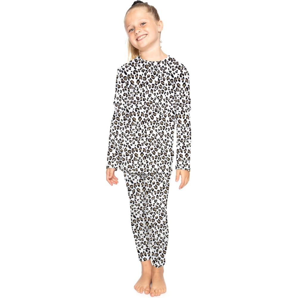 STRETCH IS COMFORT Youth Girls Oh So Soft 2-Piece Set | Short or Long Sleeve Crew Neck Top with Matching Leggings(White Cheetah)