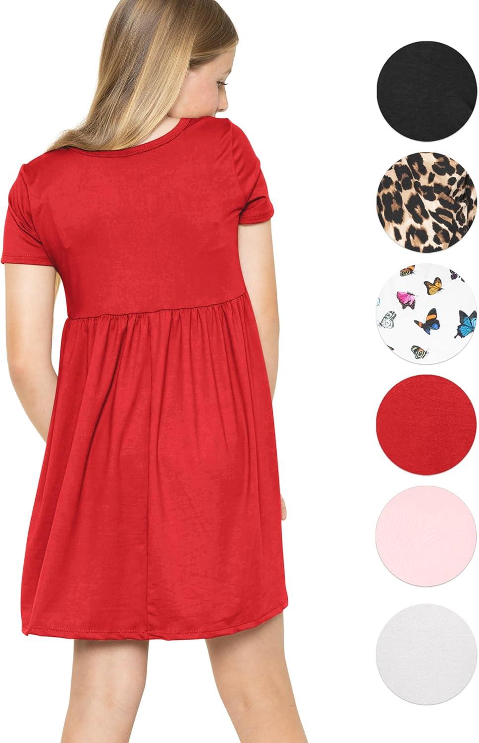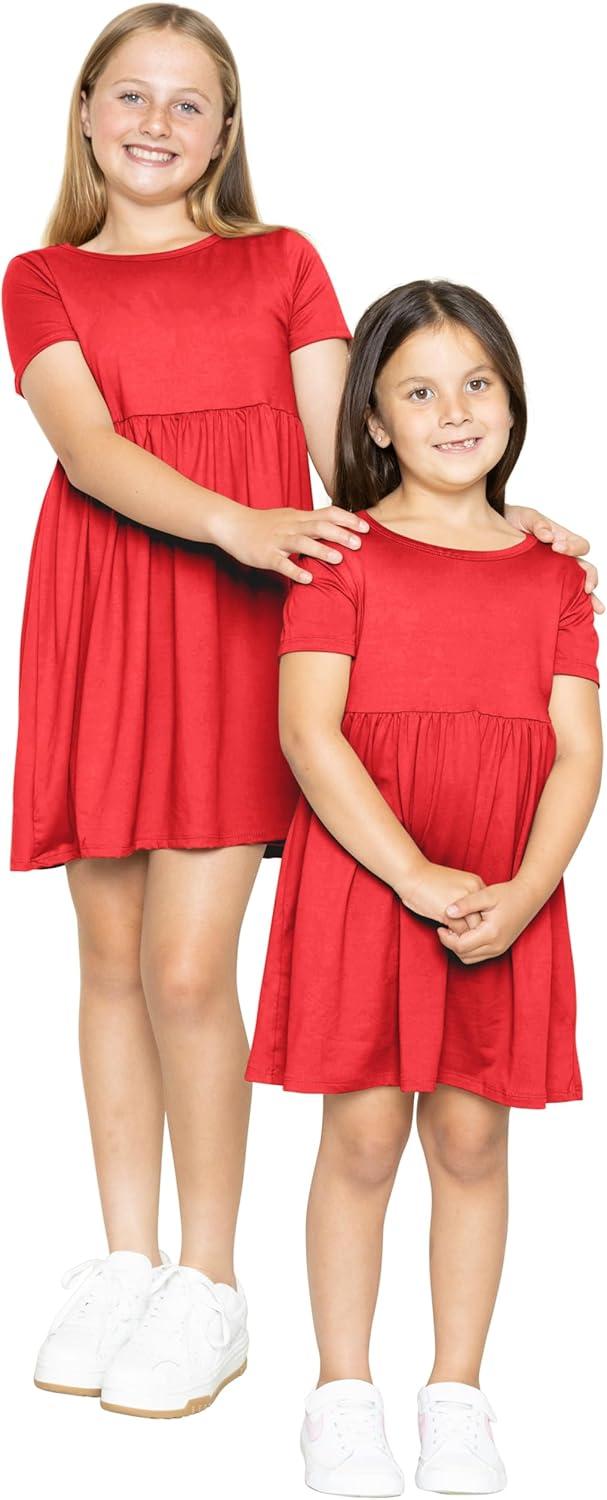 STRETCH IS COMFORT Youth Girl’s Oh So Soft Playtime T Shirt Dress Short Sleeve Casual Stretch Play Dresses|Little to Big Kids(Red)