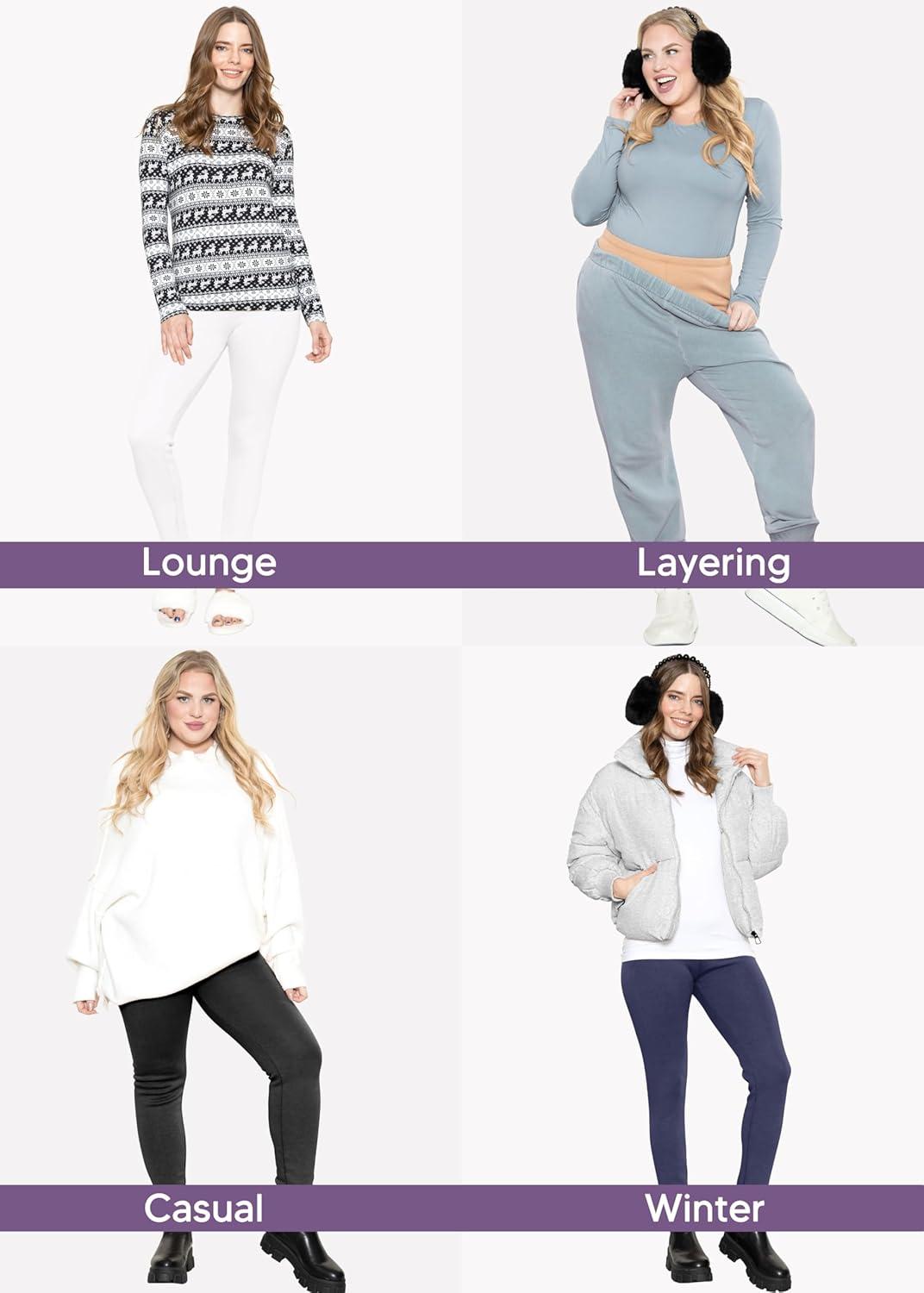 Women’s and Plus Size Knee-Length and Ankle Length Leggings(Fleece White)