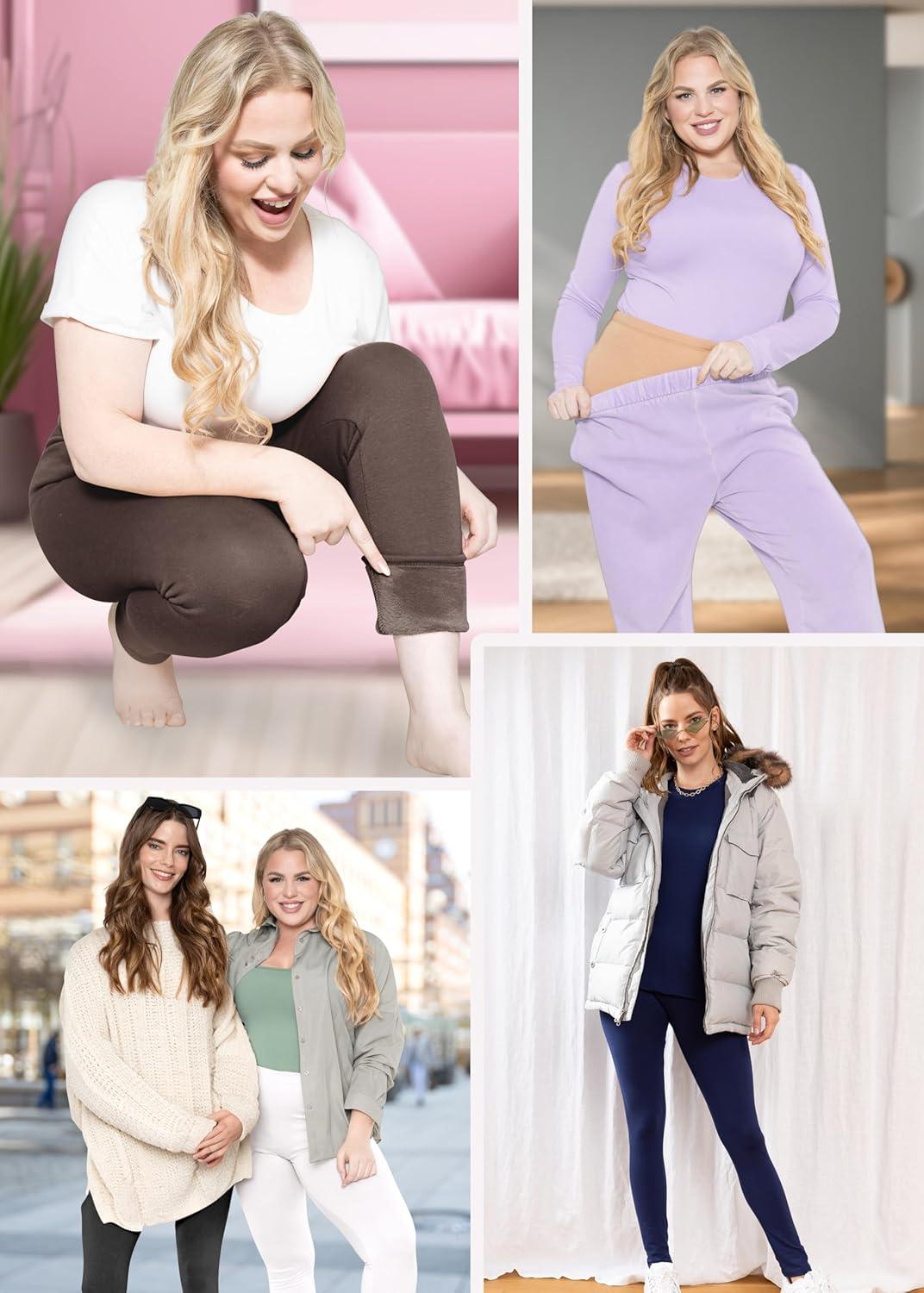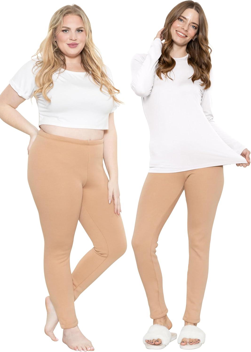 Women’s and Plus Size Knee-Length and Ankle Length Leggings(Fleece Beige)