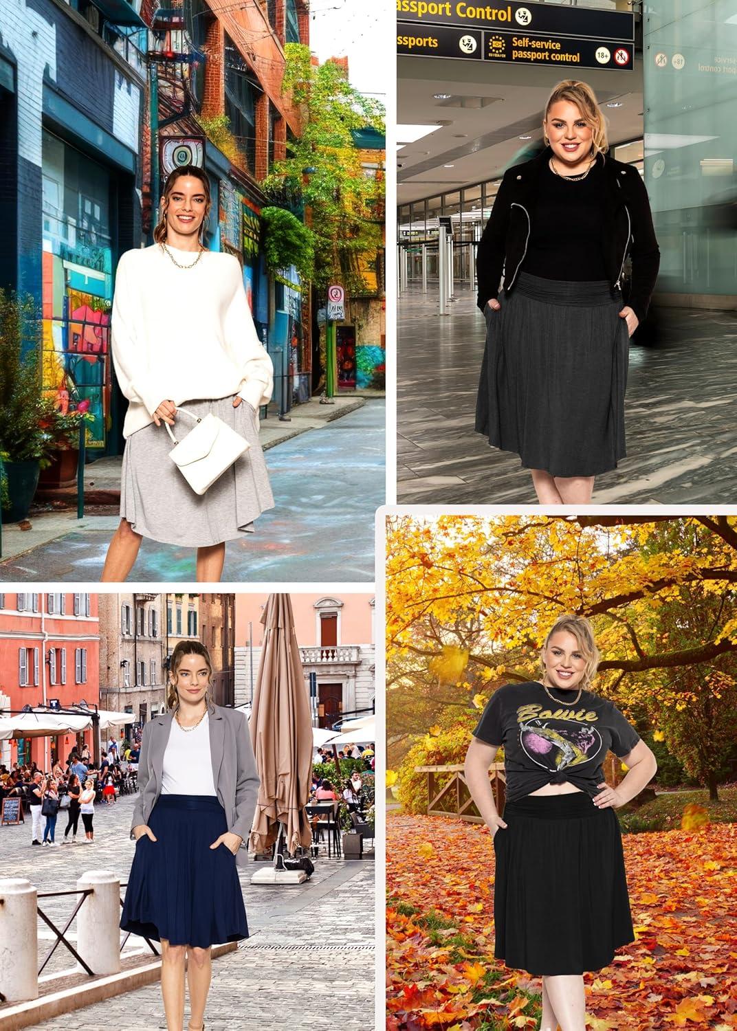 Women’s and Plus Size Scoop Hem Flare Mid Length Skirt with Pockets | S-5X(Royal Blue)