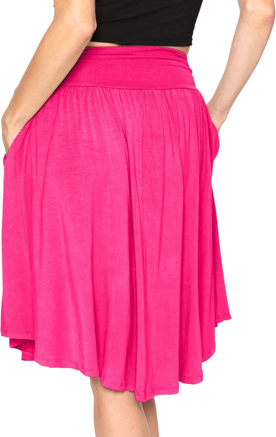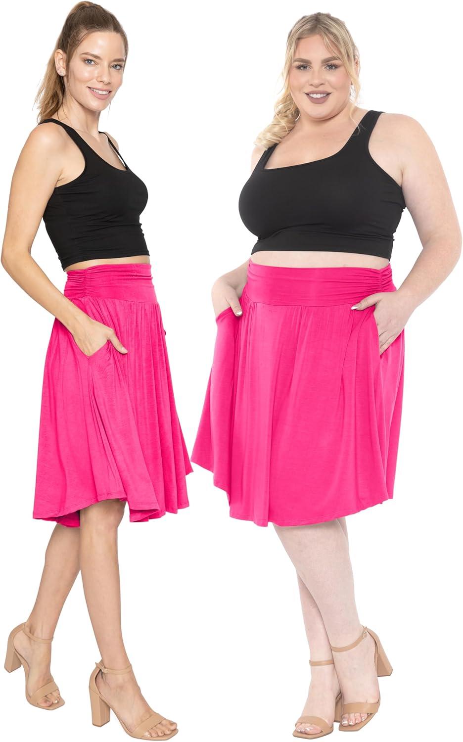 Women’s and Plus Size Scoop Hem Flare Mid Length Skirt with Pockets | S-5X(Hot Pink)