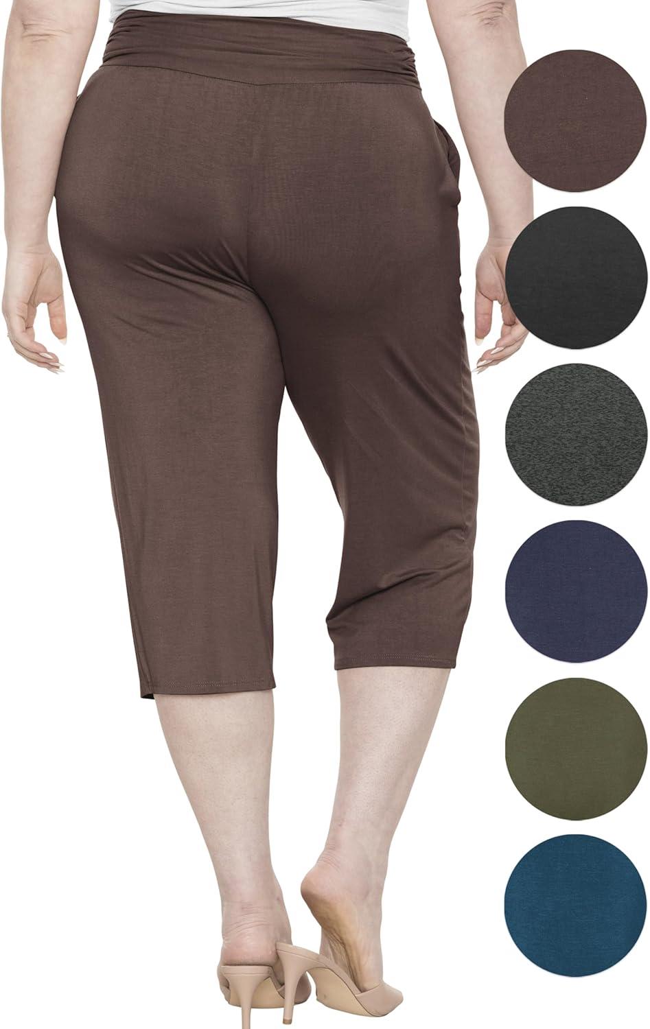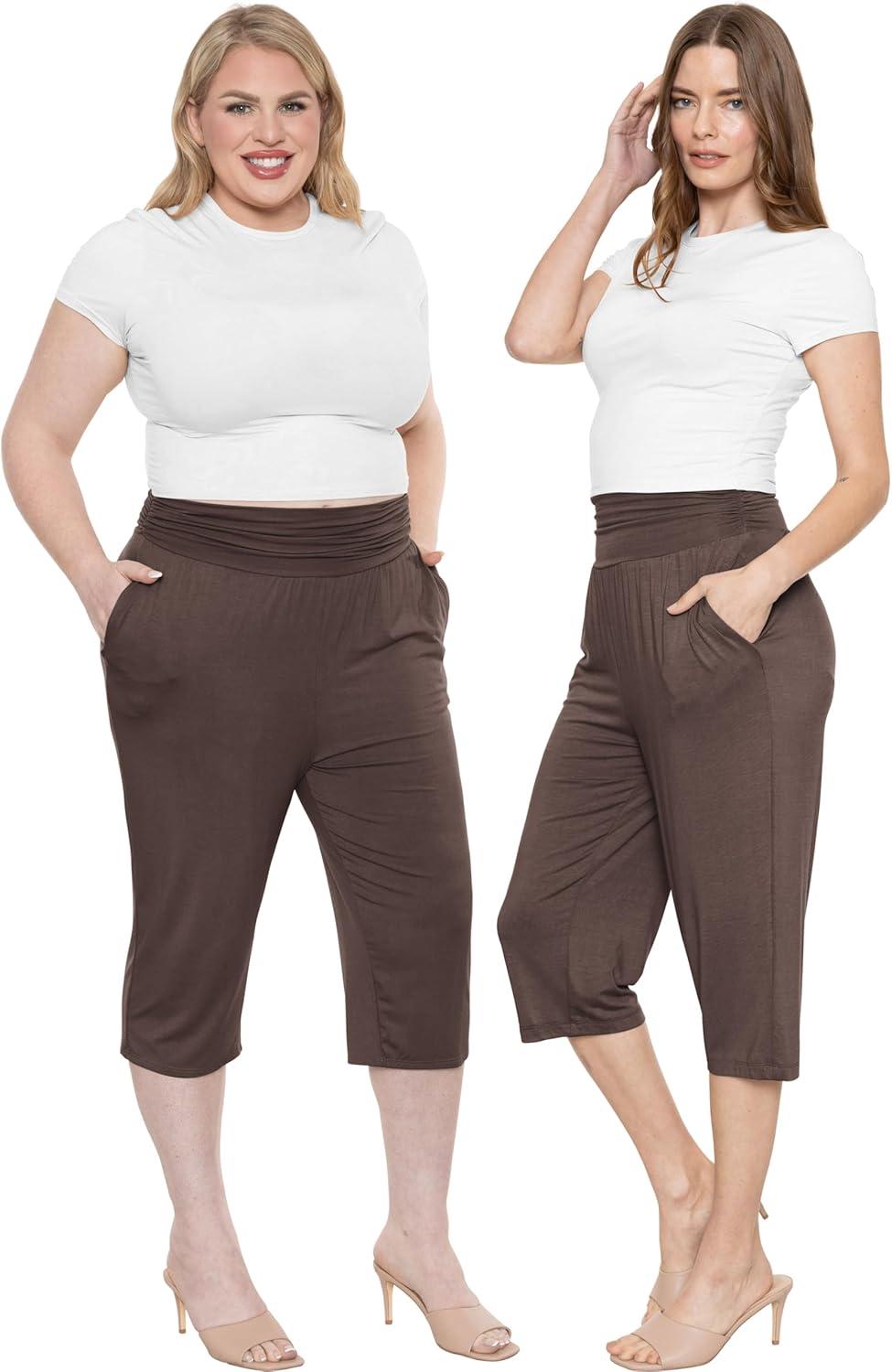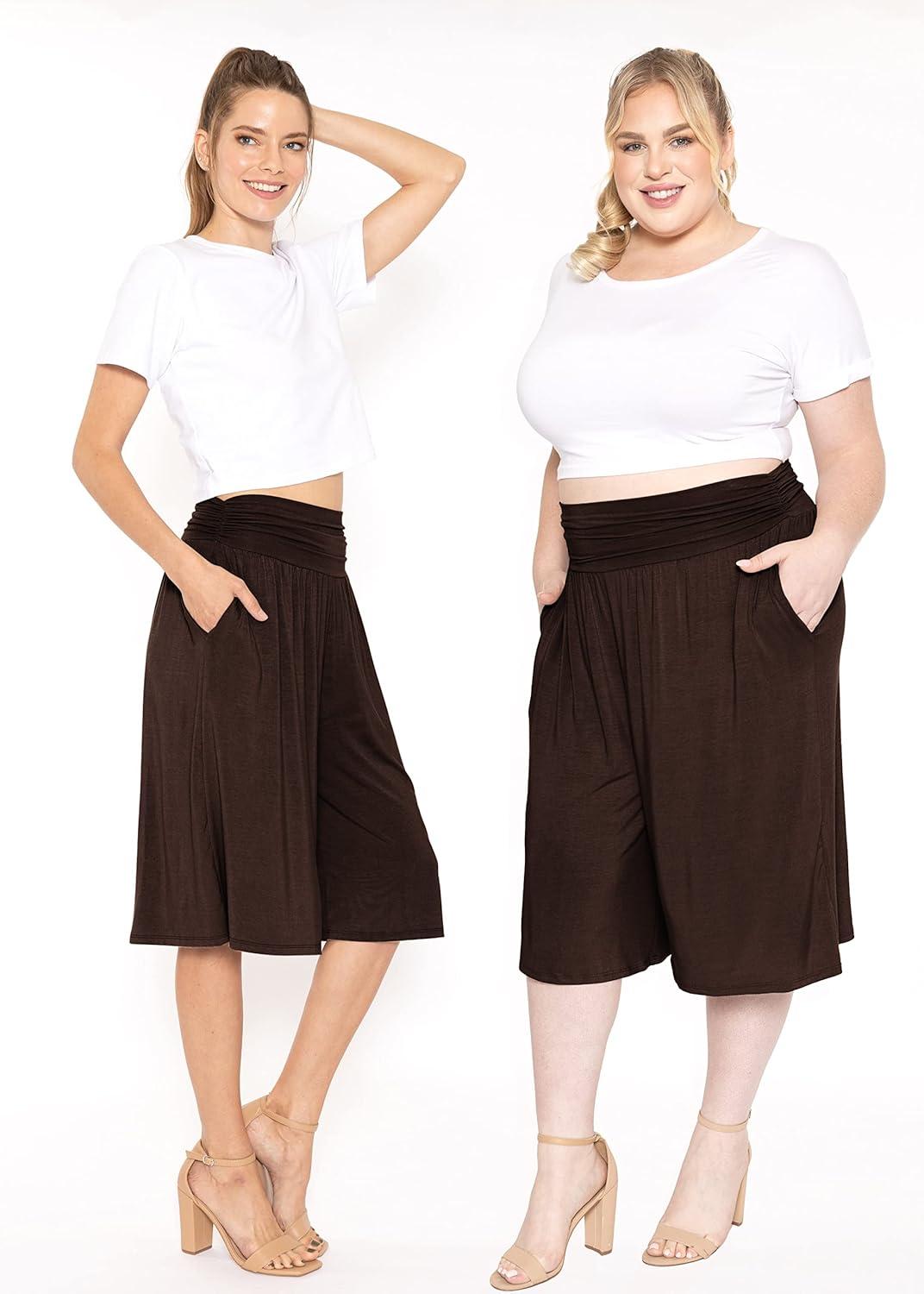 Women’s Straight Leg and Flowy Gaucho Pants with Pockets | Small-5X(Brown)