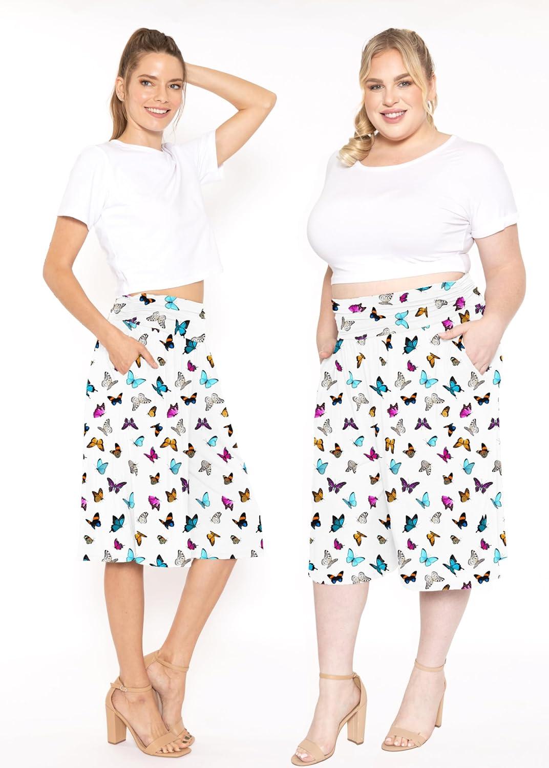 Women’s Straight Leg and Flowy Gaucho Pants with Pockets | Small-5X(Butterfly)