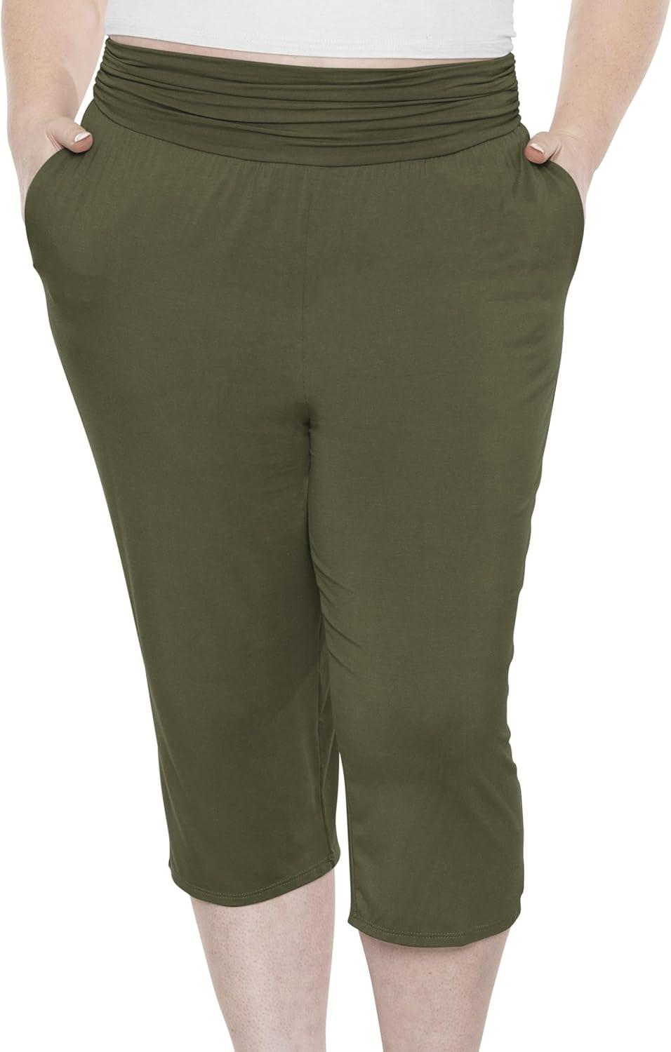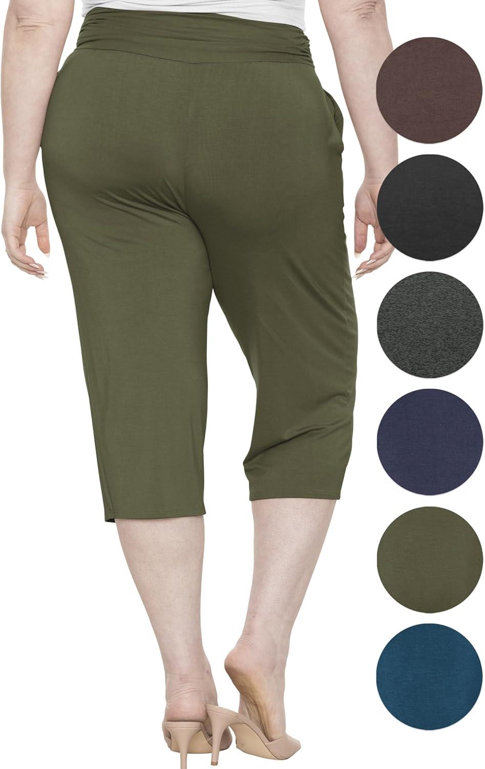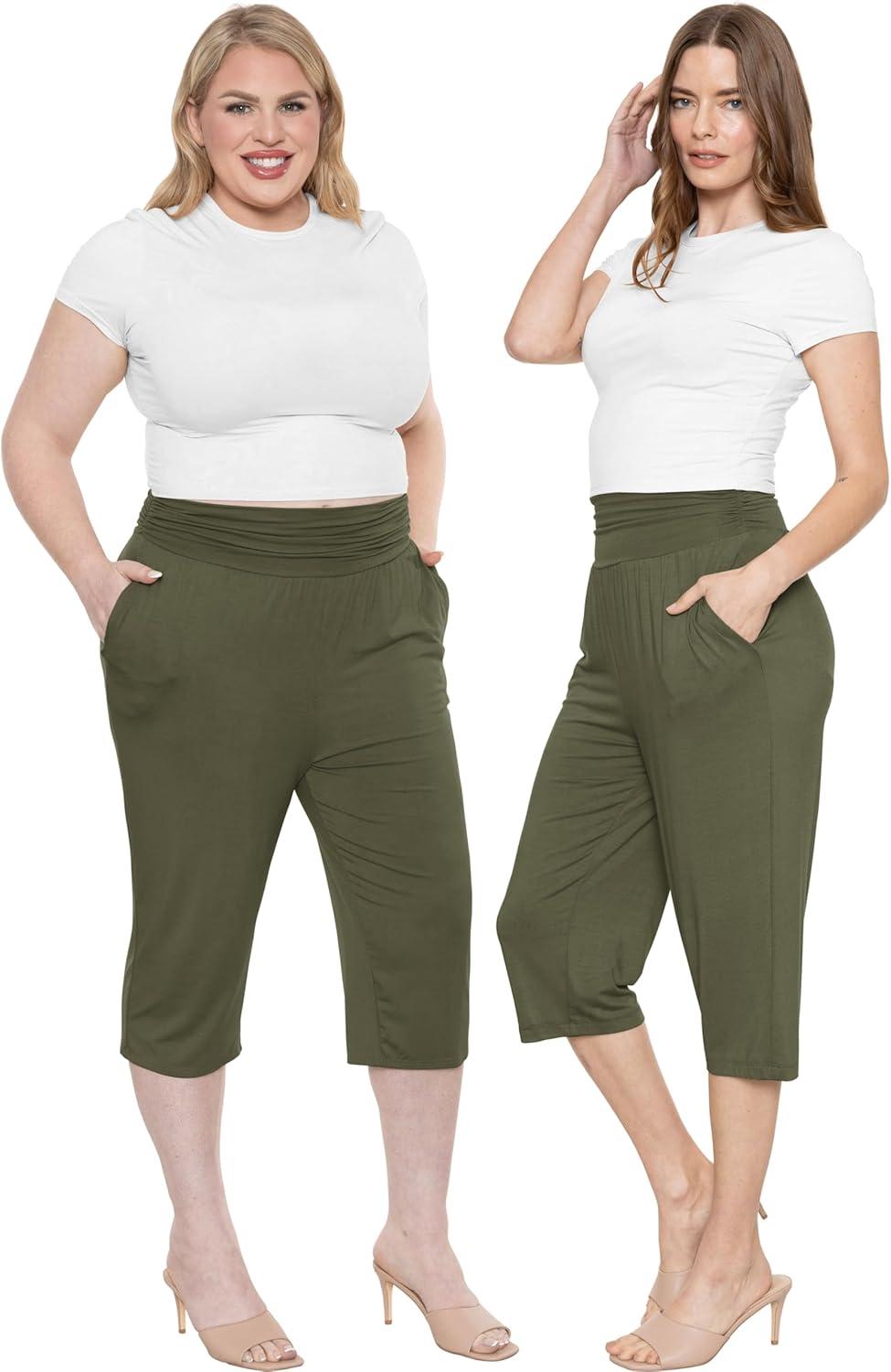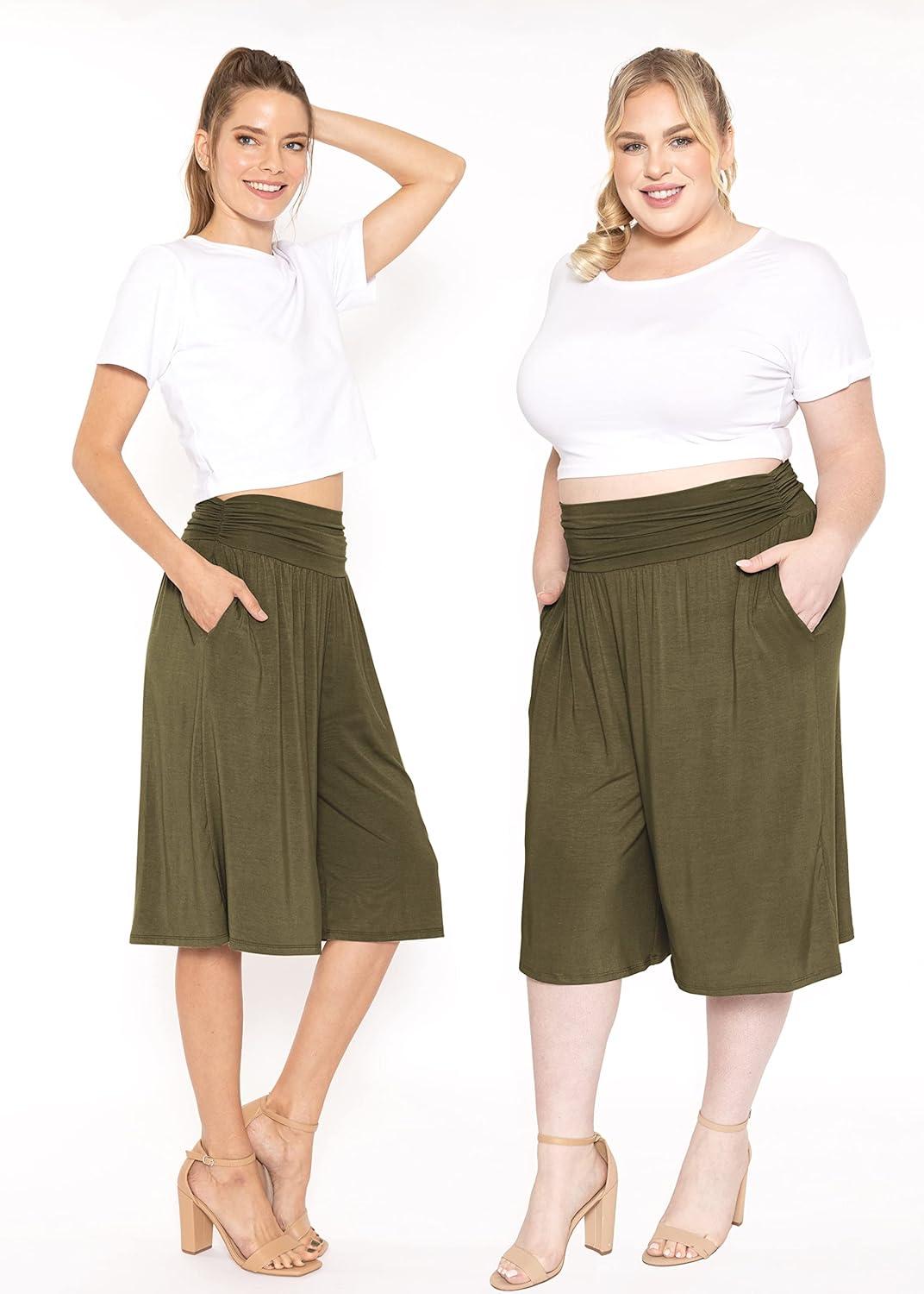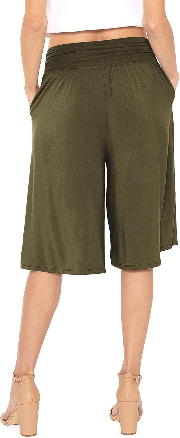Women’s Straight Leg and Flowy Gaucho Pants with Pockets | Small-5X(Olive Green)